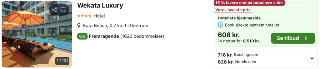 Flyet lander i Phuket den 1. december, hvilket der er taget højde for i overnatningen. Rejs365 er ikke et rejsebureau, men en rejseside, der finder gode tilbud! – Vi modtager kommission, men det påvirker ikke din pris! Læs mere her |