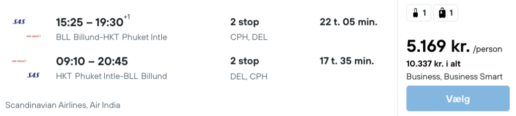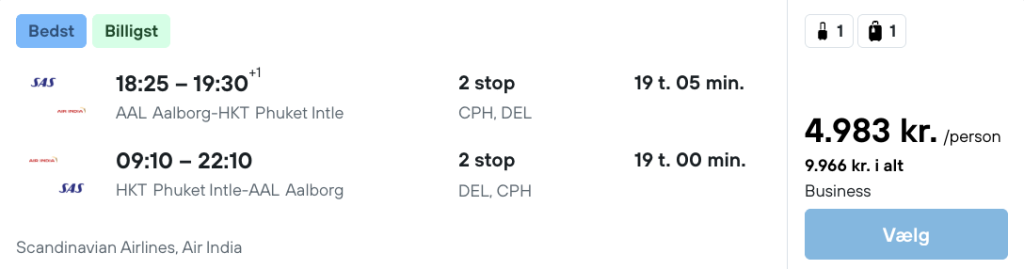 Hvis rejsen er med “Vis rejse” link, så er der tale om en pakkerejse, hvor fly og hotel bestilles på en gang.