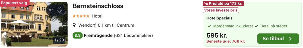 Bemærk: Den samlede pris for 2 personer i et dobbeltværelse er 595,- hvilket svarer til 298,- per person. Der kan være mindre prisforskelle på mobil og pc. Undersøg med fordel, hvor det er billigst inden bestilling. Rejs365 er ikke et rejsebureau, men en rejseside, der finder gode tilbud! – Vi modtager kommission, men det påvirker ikke din pris! Læs mere her