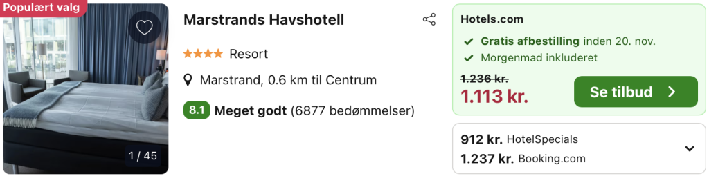Vi har taget udgangspunkt i et ophold fra den 23. – 24. november på Marstrands Havshotell, der er kendt for sit førsteklasses spa, der byder på opvarmede pools, saunaer, dampbad og et bredt udvalg af wellness-behandlinger, perfekt til afslapning og fornyelse. Hotellets restaurant serverer lækre retter med fokus på friske, lokale råvarer fra havet. Med sin beliggenhed tæt på både natur, charmerende byliv og historiske seværdigheder som Carlstens Fästning, er Marstrands Havshotell en perfekt destination for dem, der ønsker en rolig og naturskøn getaway.