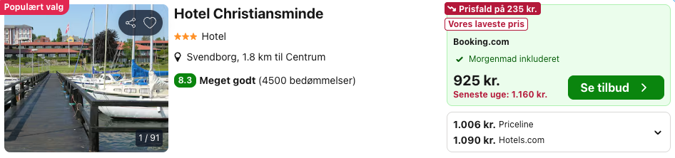 Bemærk: Den samlede pris for opholdet er 925,- for 2 personer i et dobbeltværelse, hvilket svarer til 463,- per person. Der kan være mindre prisforskelle på mobil og pc. Undersøg med fordel, hvor det er billigst inden bestilling. Rejs365 er ikke et rejsebureau, men en rejseside, der finder gode tilbud! – Vi modtager kommission, men det påvirker ikke din pris! Læs mere her  |