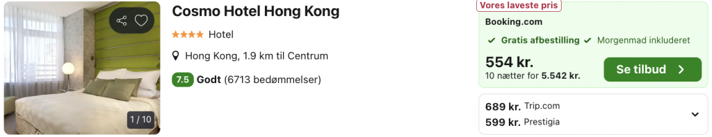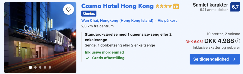 Vælg booking.com på trivago og log ind / opret en gratis bruger. Derved opnås den bedste pris!