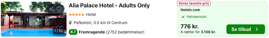 Hvis rejsen er med “Vis rejse” link, så er der tale om en pakkerejse, hvor fly og hotel bestilles på en gang.