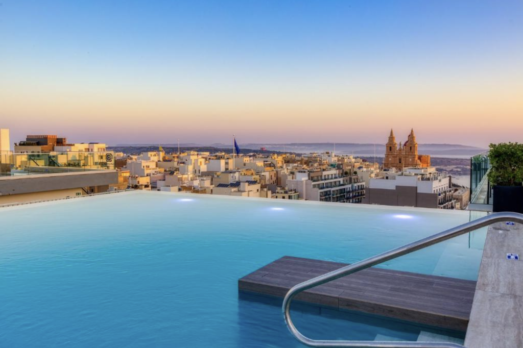 Solana Hotel & Spa ligger midt i den charmerende by Mellieħa og kombinerer moderne komfort med ægte middelhavsstemning. Hotellet har lyse og stilfulde værelser, mange med balkon og udsigt over byen eller havet. Her kan du starte dagen med en lækker morgenbuffet, tage en dukkert i poolen på tagterrassen og nyde udsigten over det azurblå hav.