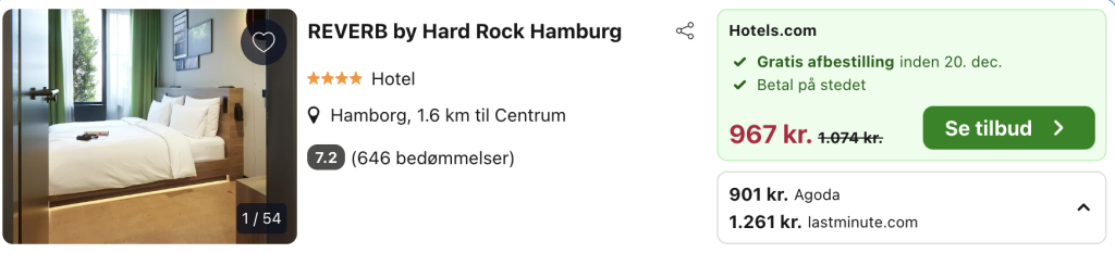 REVERB by Hard Rock Hamburg er et hotel, du ikke glemmer. Her bor du midt i Hamborg – oven på en historisk bunker, der i dag er forvandlet til et moderne designhotel med udsigt over hele byen. Kombinationen af rå beton og blød komfort giver stedet en helt særlig stemning, hvor musik, kreativitet og bæredygtighed går hånd i hånd.