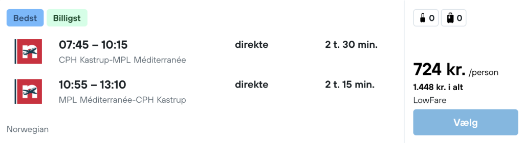 På vores flysøgningsmaskine har vi fundet billige flybilletter fra København til Montpellier: