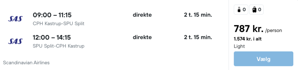 På vores flysøgningsmaskine har vi fundet billige flybilletter fra København til Split: