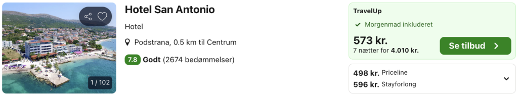 1 uge i Podstrana for kun 2.530,- per person inkl. direkte fly og hotel med pool, morgenmad og god beliggenhed!