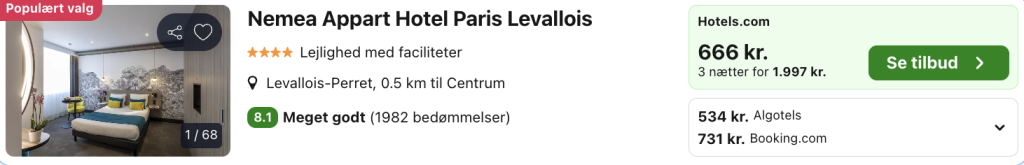 | Bemærk: Der kan være mindre prisforskelle på mobil og pc. Undersøg med fordel, hvor det er billigst inden bestilling. Vælg “Vores laveste pris” på trivago, for at opnå den bedste pris på hotellet.