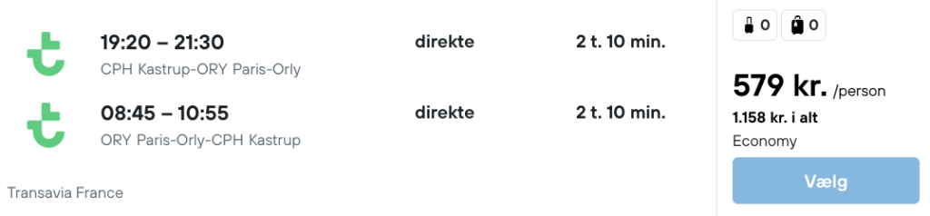 Tjek altid datoerne for at se om de passer sammen før du bestiller, da vi kan have begået fejl. Tjek derudover også prisen på begge ting før du bestiller det ene, da prisen kan have ændret sig. Der kan også være små variationer i prisen mellem mobil og pc.