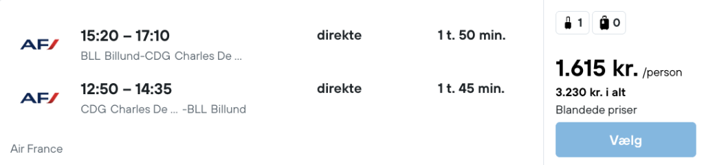 På vores flysøgemaskine har vi fundet billige flybilletter fra København og Billund til Paris.