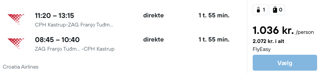 På vores flysøgningsmaskine har vi fundet billige flybilletter fra København til Zagreb: