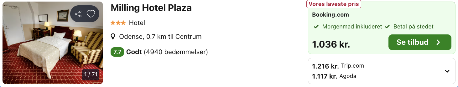 Weekendophold i Odense for kun 518,- per person inkl. flot 4-stjernet hotel med central beliggenhed og morgenmad!