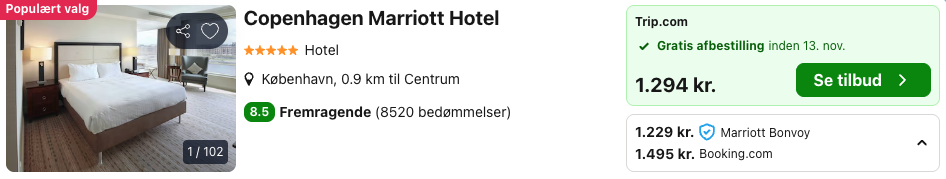 Med kun få minutters gang til Tivoli, Strøget og byens mange seværdigheder er hotellet et ideelt udgangspunkt for at opleve København. Copenhagen Marriott Hotel kombinerer international luksus med dansk design og skaber en elegant base for gæster, der ønsker komfort og nærhed til byens bedste oplevelser.