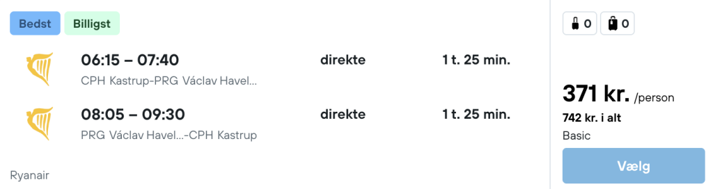 Flyprisen inkluderer kun en lille taske, men bagage kan tilkøbes.