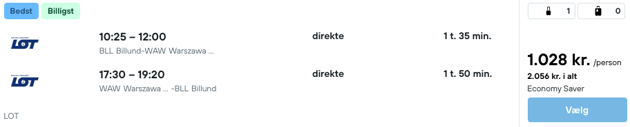 På vores flysøgningsmaskine har vi fundet billige flybilletter fra København og Billund til Warszawa: