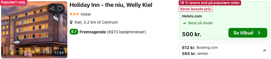 Ophold i Kiel for kun 250,- per person inkl. flot 3-stjernet hotel med central beliggenhed!