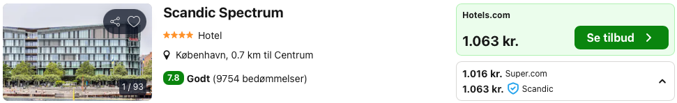 Derudover har hotellet et veludstyret fitnesscenter og gratis Wi-Fi, som er inkluderet i opholdet. Scandic Spectrum har også to restauranter, der serverer alt fra nordiske retter til internationale smagsoplevelser, og en bar på øverste etage med en smuk udsigt over byen. Hotellet er perfekt for både forretningsrejsende og turister, der ønsker at opleve København i stil.