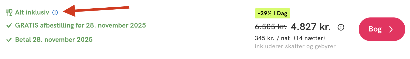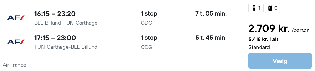 Hvis rejsen er med “Vis rejse” link, så er der tale om en pakkerejse, hvor fly og hotel bestilles på en gang.