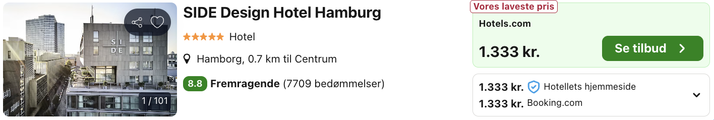 Vi har taget udgangspunkt i et ophold fra den 14. – 15. december på Side Design Hotel i Hamburg, der er et stilfuldt og moderne byhotel, der kombinerer urban elegance med en afslappet atmosfære.