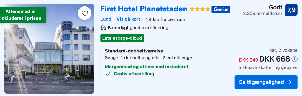 Weekendophold på det 4-stjernede First Hotel Planetstaden i Lund for kun 535,- per person inkl. halvpension og adgang til spa på toppen af hotellet med Skånes største massagepool og fantastisk panoramaudsigt over omgivelserne!