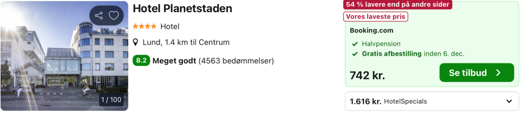 Vælg booking.com på trivago og opret en gratis bruger eller log ind. Derved opnås den billigste pris.