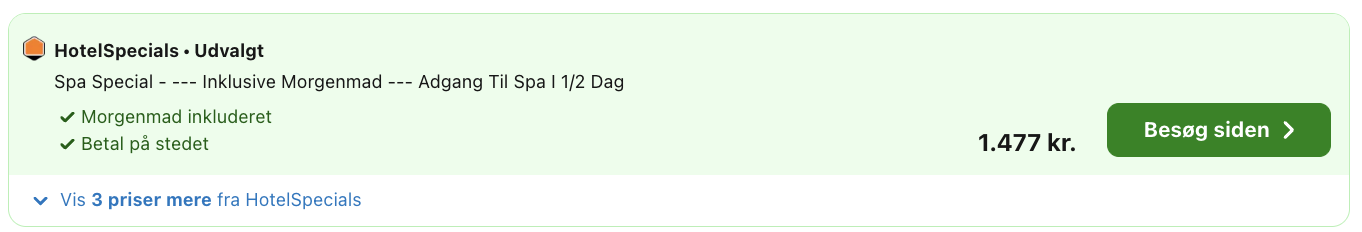 Bemærk: Den samlede pris for 2 personer i et dobbeltværelse er 1.477,- hvilket svarer til 739,- per person inkl. obligatorisk ekspeditionsgebyr. Vælg hotelspecials på trivago, så er adgang til spa inkluderet i prisen. Rejs365 er ikke et rejsebureau, men en rejseside, der finder gode tilbud! – Vi modtager kommission, men det påvirker ikke din pris! Læs mere her |