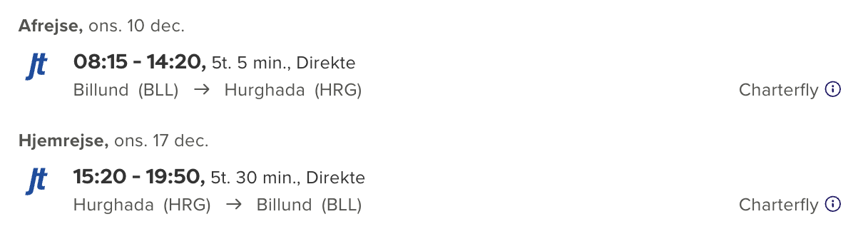 Hvis rejsen er med “Vis rejse” link, så er der tale om en pakkerejse, hvor fly og hotel bestilles på en gang.