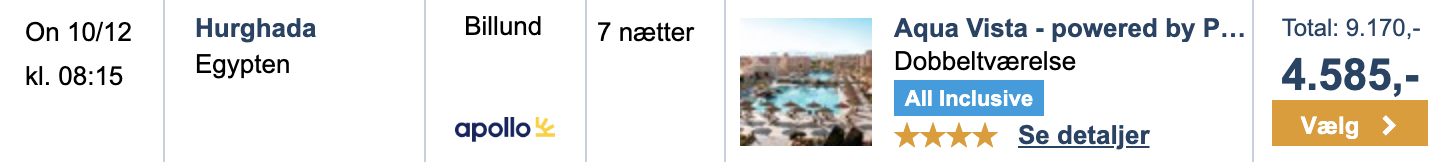 Hos Travelmarket har vi med Apollo fundet gode tilbud fra Billund, København og Aalborg til Hurghada: