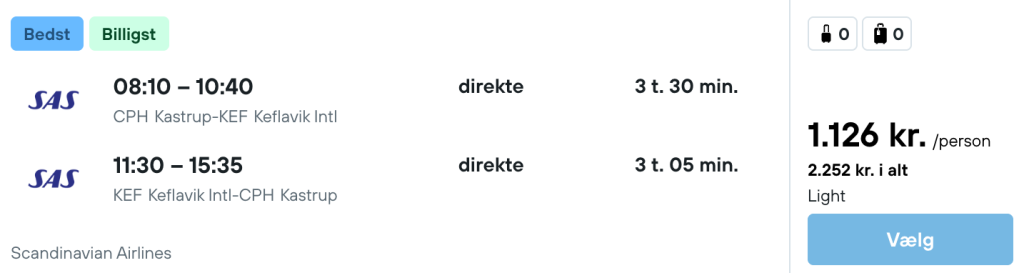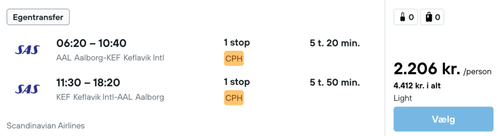 På vores flysøgningsmaskine har vi fundet billige flybilletter fra København og Aalborg til Island: