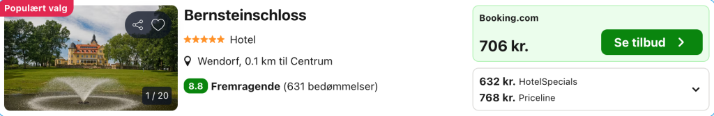 Bemærk: Den samlede pris for 2 personer i et dobbeltværelse er 632,- hvilket svarer til 316,- per person. Der kan være mindre prisforskelle på mobil og pc. Undersøg med fordel, hvor det er billigst inden bestilling.