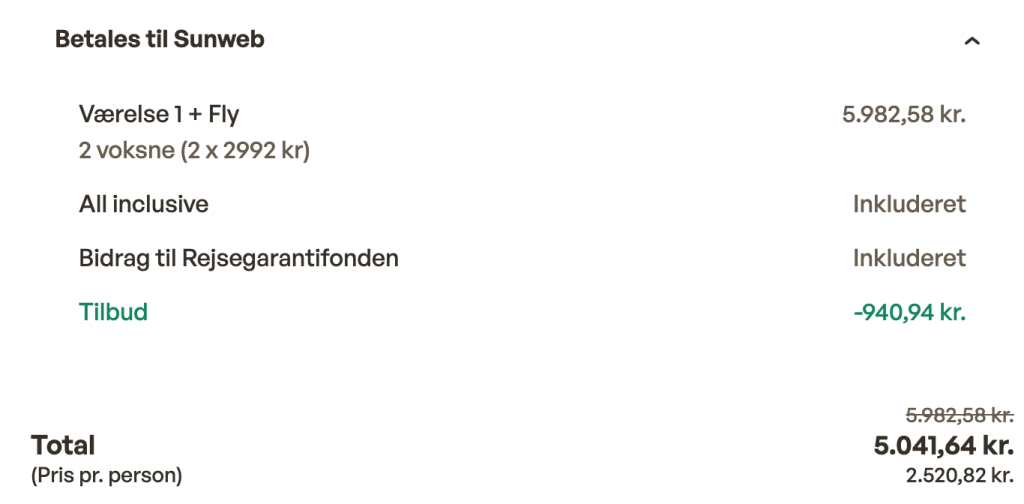 Prisen tager udgangspunkt i 2 personer. Man kan sagtens rejse flere voksne og eller med børn og derved typisk opnå en billigere pris pr. person.
