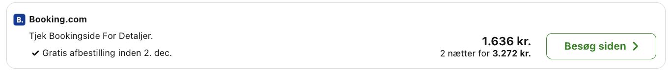 Hvis rejsen er med “Vis fly” og “Vis hotel” link, så er der tale om en sammensat rejse. Det vil sige at fly og hotel skal bestilles hver for sig. Prisen vi angiver vil dog være samlet for fly og hotel med mindre andet er angivet.