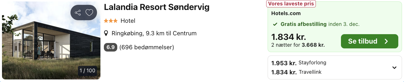 Hvis rejsen er med “Vis rejse” link, så er der tale om en pakkerejse, hvor fly og hotel bestilles på en gang.