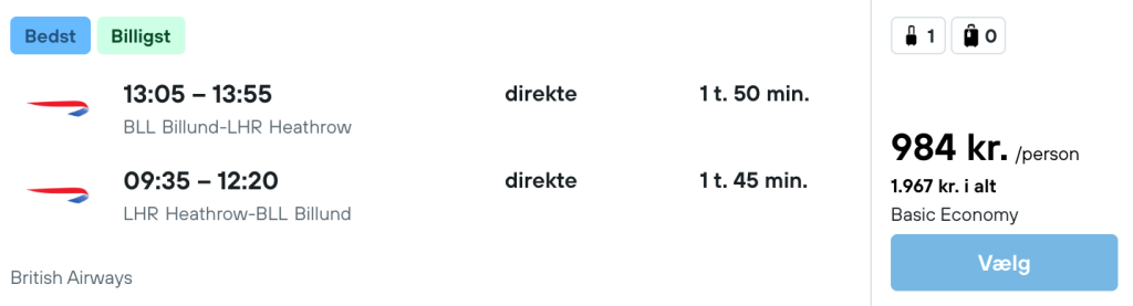 Vi har fundet billige flybilletter fra København, Billund og Aarhus til London:
