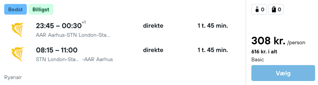 Flyprisen inkluderer kun en lille taske, men bagage kan tilkøbes.