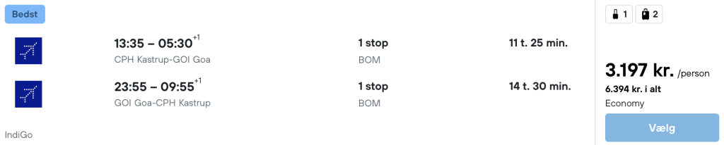 På vores flysøgningsmaskine har vi fundet billige flybilletter fra København og Aalborg til Goa:
