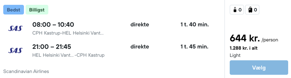 Hvis rejsen er med “Vis rejse” link, så er der tale om en pakkerejse, hvor fly og hotel bestilles på en gang.