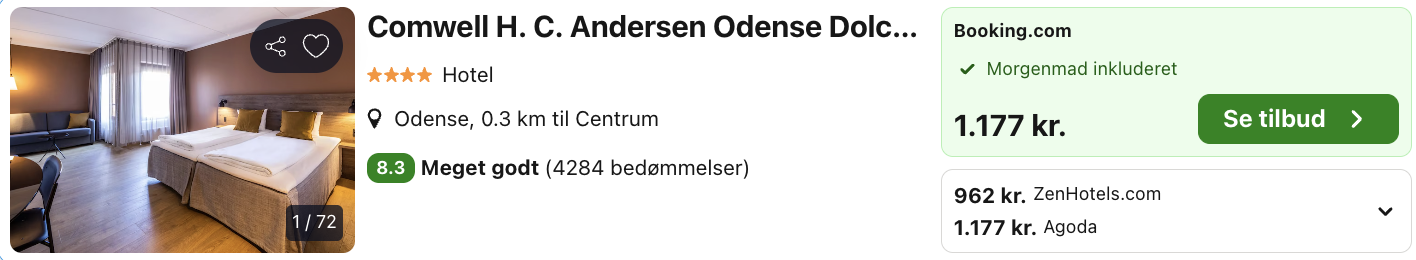 Ophold i Odense på det populære 4-stjernede H.C. Andersen Hotel for kun 589,- per person inkl. morgenmad!