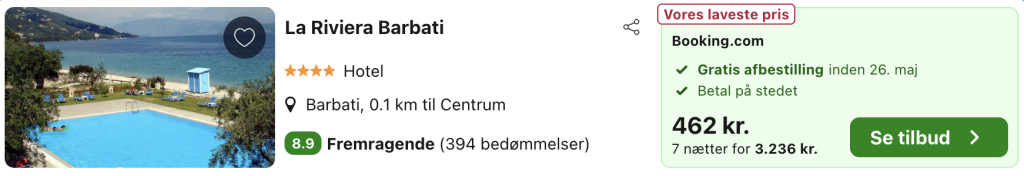 Hvis rejsen er med “Vis fly” og “Vis hotel” link, så er der tale om en sammensat rejse. Det vil sige at fly og hotel skal bestilles hver for sig. Prisen vi angiver vil dog være samlet for fly og hotel med mindre andet er angivet.