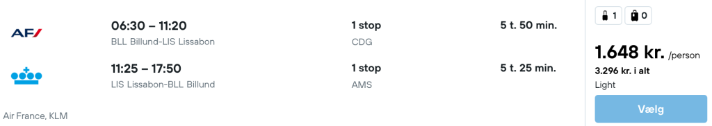 På vores flysøgemaskine har vi fundet billige flybilletter fra København og Billund til Lissabon.