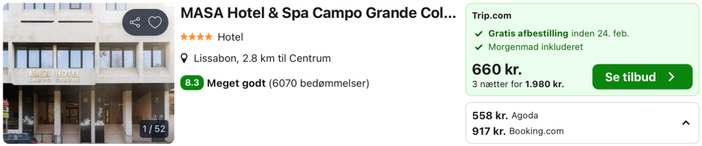 4 dage i Lissabon for kun 1.534,- per person inkl. fly og godt 4-stjernet hotel med pool!