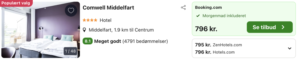 Bemærk: Den samlede pris for opholdet er 795,- for 2 personer i et dobbeltværelse med morgenmad, hvilket svarer til 398,- per person. Der kan være mindre prisforskelle på mobil og pc. Undersøg med fordel, hvor det er billigst inden bestilling. Rejs365 er ikke et rejsebureau, men en rejseside der finder gode tilbud! – Vi modtager kommission, men det påvirker ikke din pris! Læs mere her