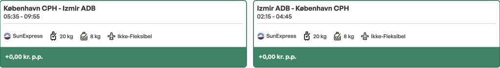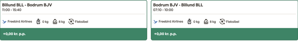 Hvis rejsen er med “Vis rejse” link, så er der tale om en pakkerejse, hvor fly og hotel bestilles på en gang.