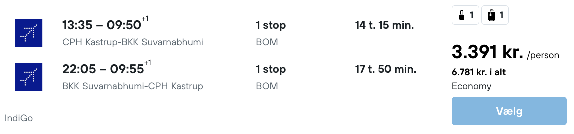 På vores flysøgemaskine har vi fundet billige flybilletter fra København til Bangkok: