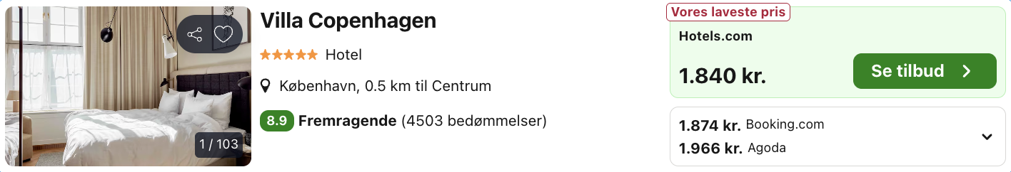 Vi har taget udgangspunkt i et ophold fra den 14. – 15. december på Villa Copenhagen, der er et luksushotel i hjertet af København, beliggende i den historiske Post- og Telegrafbygning fra 1912. Hotellet åbnede i 2020 og kombinerer klassisk arkitektur med moderne skandinavisk design. Med sine 390 stilfulde værelser inspireret af kunstneren Vilhelm Hammershøi tilbyder hotellet en oplevelse af elegance og komfort.