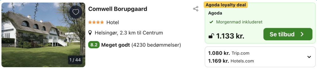 Bemærk: Den samlede pris for opholdet er 1.080,- for 2 personer i et dobbeltværelse, hvilket svarer til 540,- per person. Der kan være mindre prisforskelle på mobil og pc. Undersøg med fordel, hvor det er billigst inden bestilling Rejs365 er ikke et rejsebureau, men en rejseside, der finder gode tilbud! – Vi modtager kommission, men det påvirker ikke din pris! Læs mere her |
