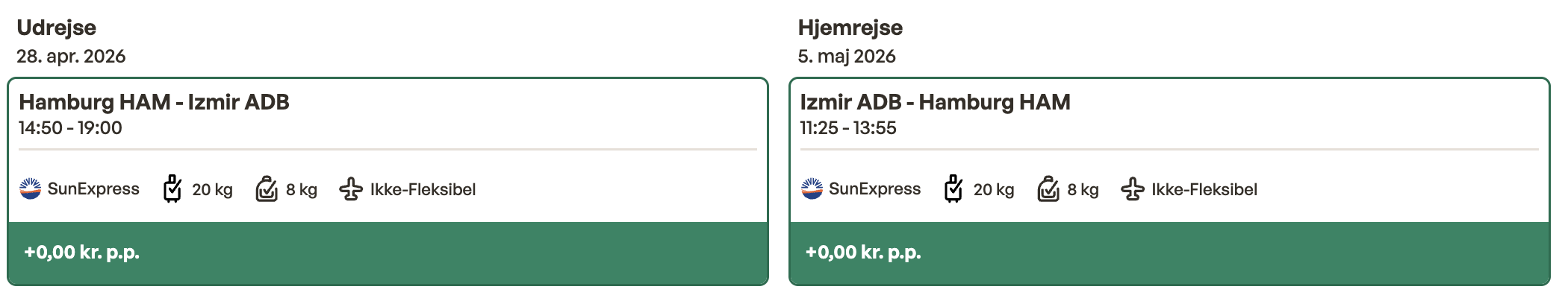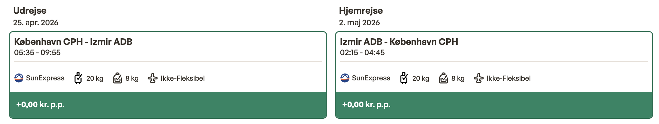 Hvis rejsen er med “Vis rejse” link, så er der tale om en pakkerejse, hvor fly og hotel bestilles på en gang.