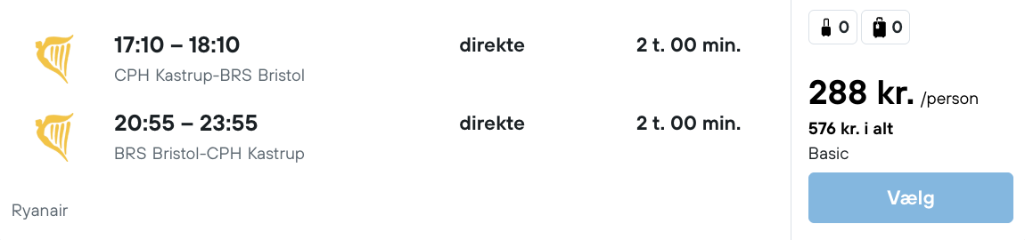 Flyprisen inkluderer kun en lille taske, men bagage kan tilkøbes.