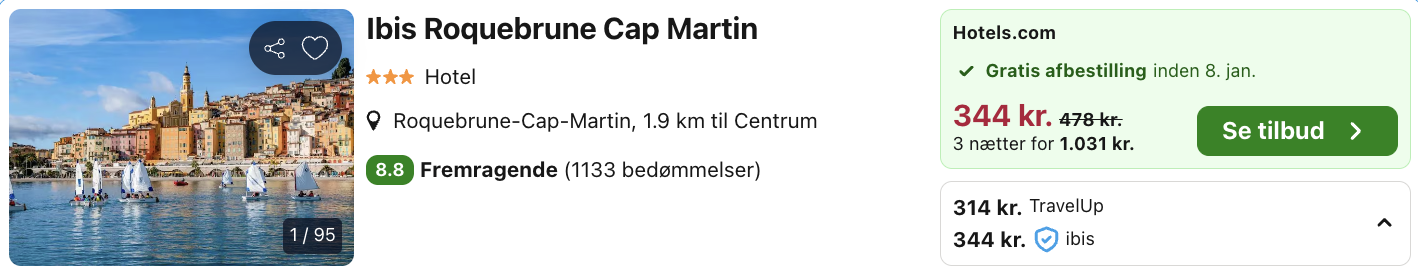 4 dages forlænget weekend i Menton for kun 1.202,- per person inkl. fly og godt 3-stjernet hotel!